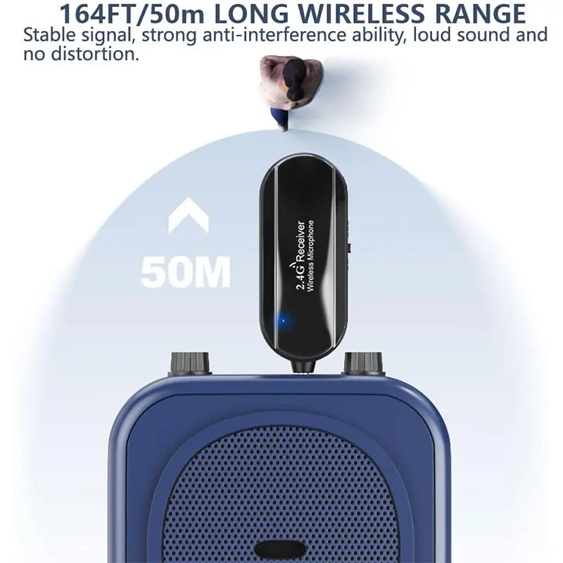 Le micro casque sans fil est équipé d’une micropuce de qualité supérieure pour assurer une véritable distance de contrôle longue de 165 pieds/50 m, vous permettant de vous déplacer librement même dans une grande pièce.