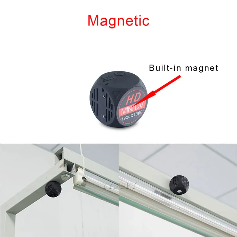 La mini caméra n’a que deux boutons, facile à utiliser. Cette caméra est dotée d’un aimant puissant intégré qui peut s’adsorber sur n’importe quelle surface en fer.