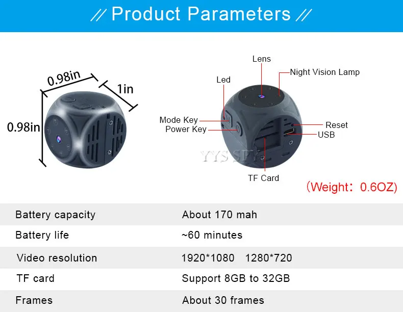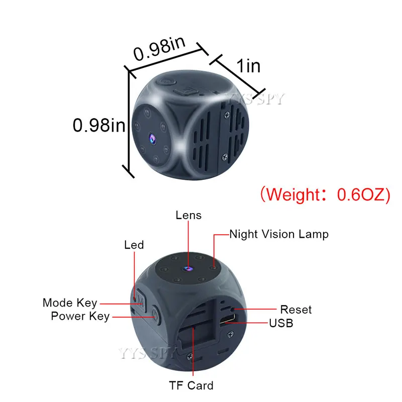 Le mini enregistreur vidéo (cube de 0,98 po et 0,6 oz) (format quart de dollar) est le plus petit appareil photo de poche portable au monde.