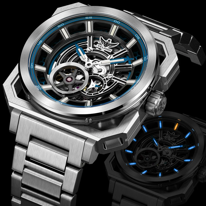 Montre de luxe pour homme Yelang V1216, cadran creux de 42 mm, mouvement automatique japonais 82S5, étanche à 100 m, montre de plongée lumineuse