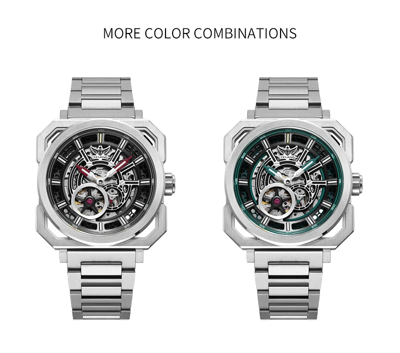 Montre de luxe pour homme Yelang V1216, cadran creux de 42 mm, mouvement automatique japonais 82S5, étanche à 100 m, montre de plongée lumineuse