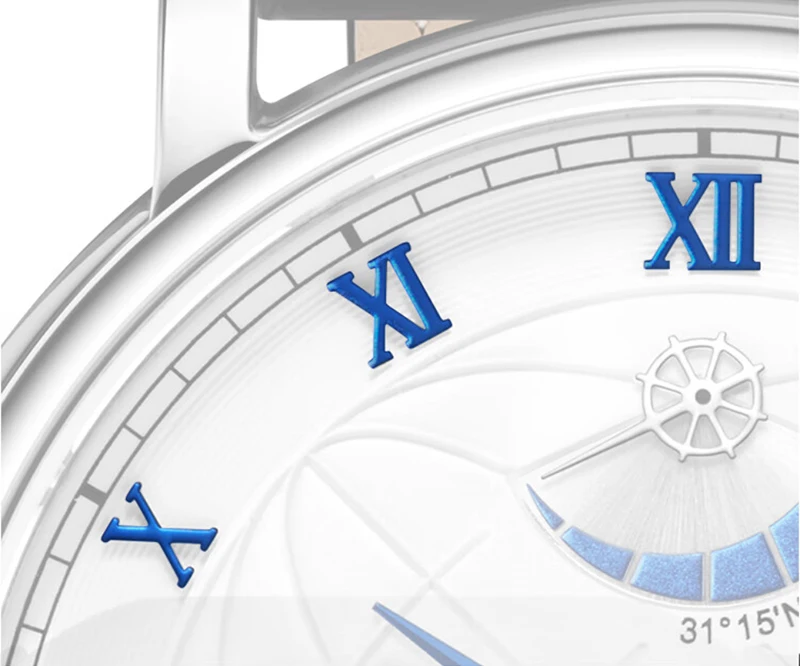 Dotée d’une réserve de marche de 56 heures et d’un indicateur jour/nuit, elle garantit performance et fiabilité au quotidien. Le boîtier en acier inoxydable 316L, le verre en saphir synthétique et le bracelet en cuir de crocodile véritable témoignent d’un artisanat haut de gamme. Avec son design rond de 43 mm, ses chiffres romains et son fermoir papillon discret, cette montre incarne le luxe intemporel.