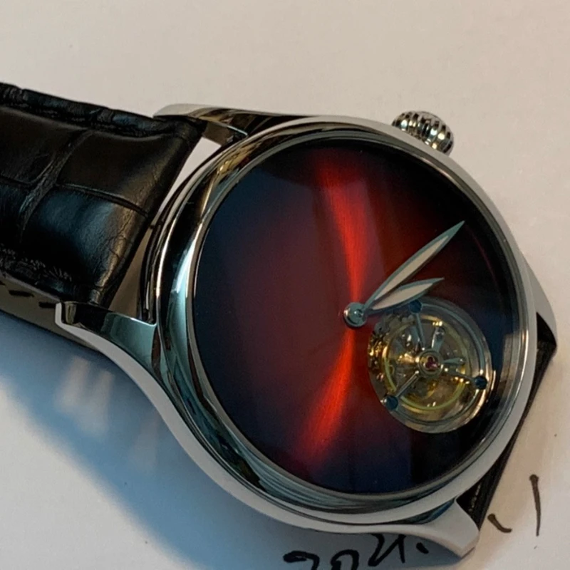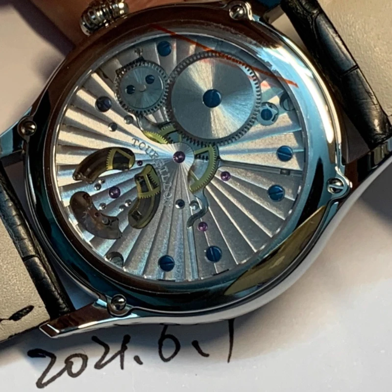 Montre tourbillon ST8230 avec mouvement Seagull, boîtier acier inoxydable 42 mm, verre saphir et bracelet cuir d’alligator. Élégance et précision au poignet.
