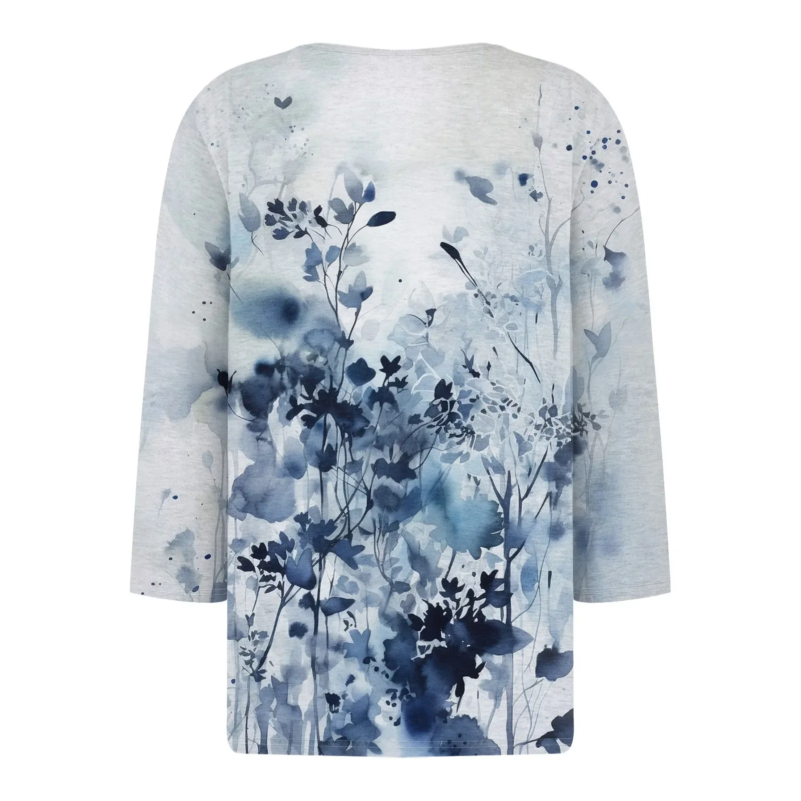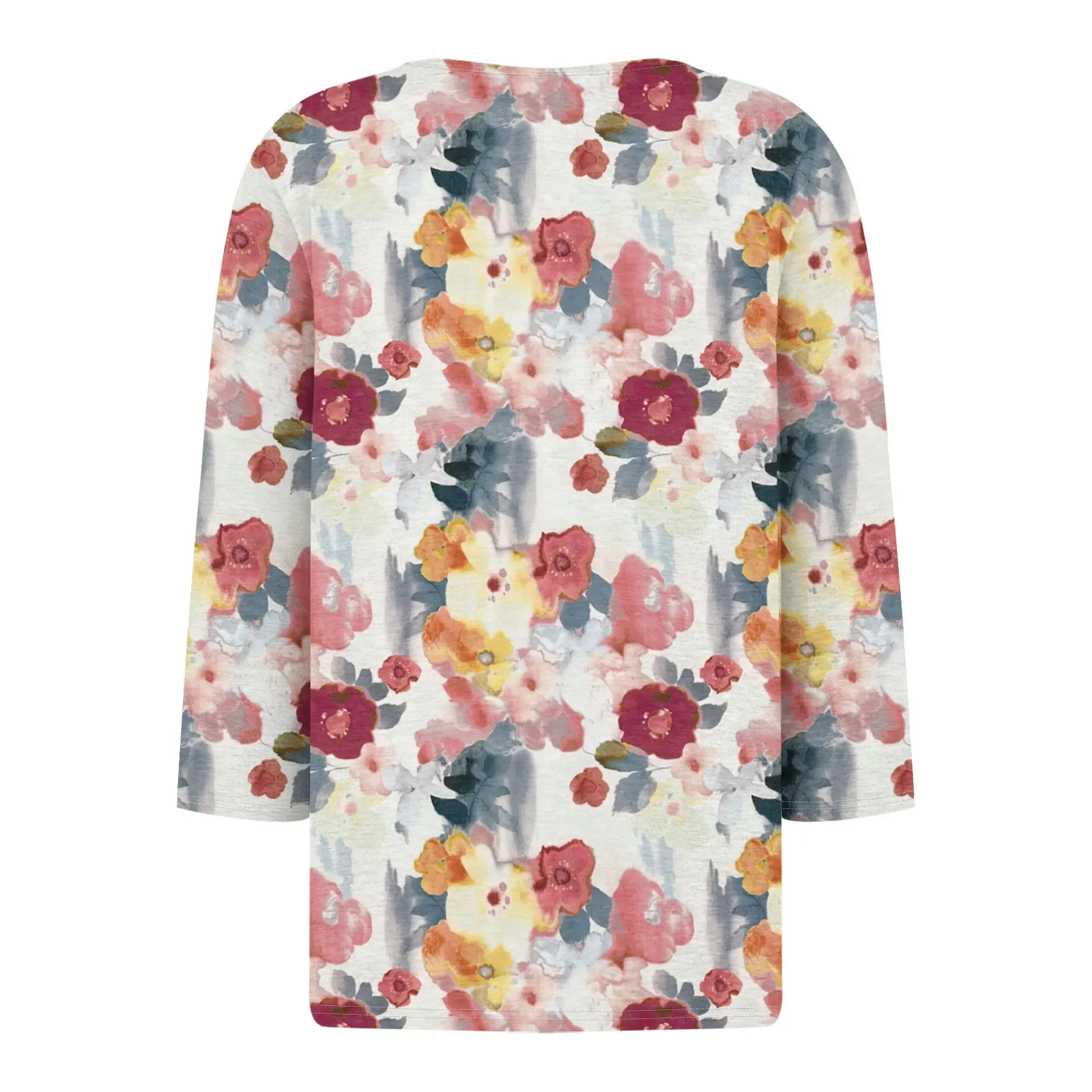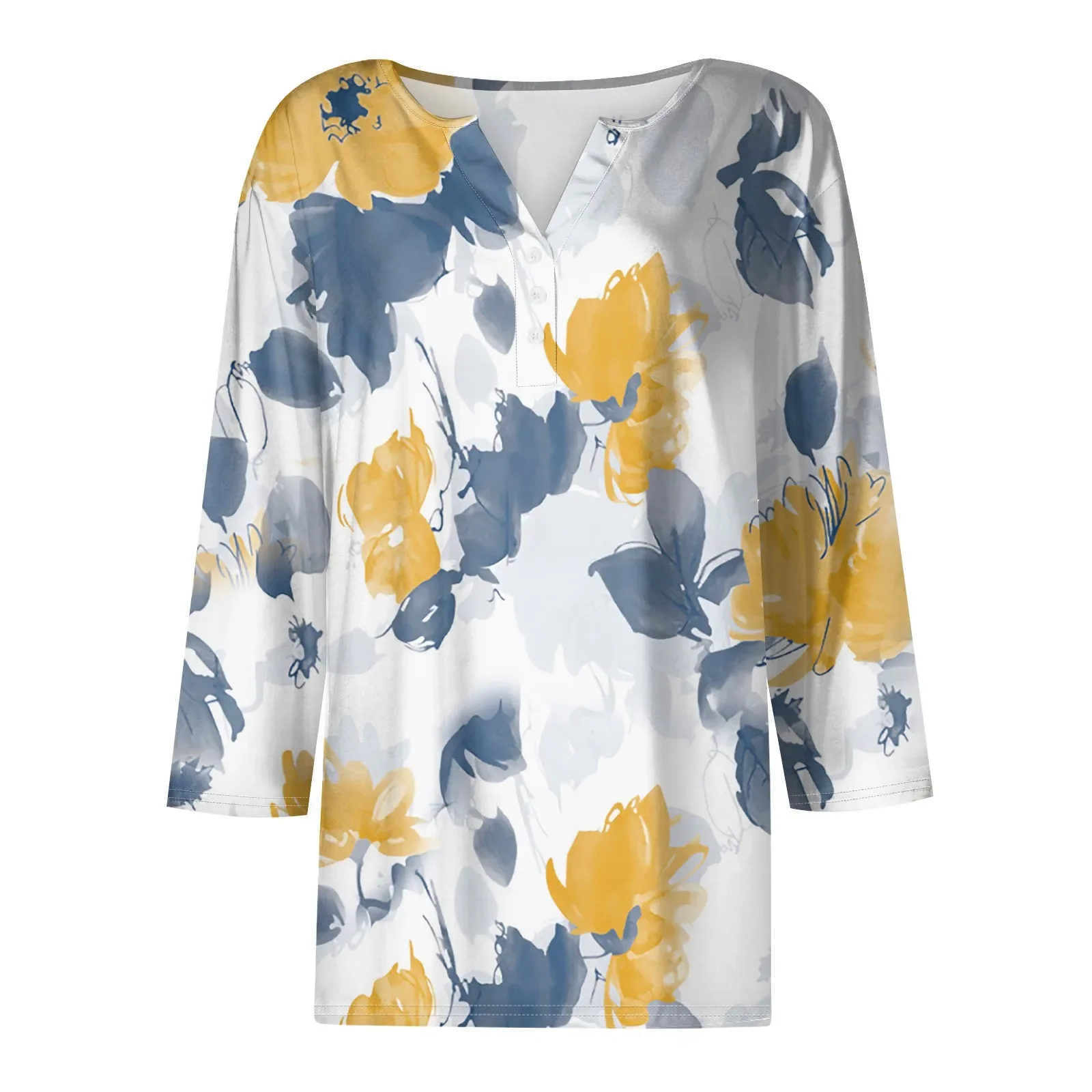 Le t-shirt pour femme est un haut décontracté à col en V avec des manches 3/4 et un motif floral élégant. Confectionné en coton et polyester, il est léger, respirant et parfait pour le printemps et l’été. Sa coupe régulière et son style classique en font un choix confortable et polyvalent pour diverses occasions.