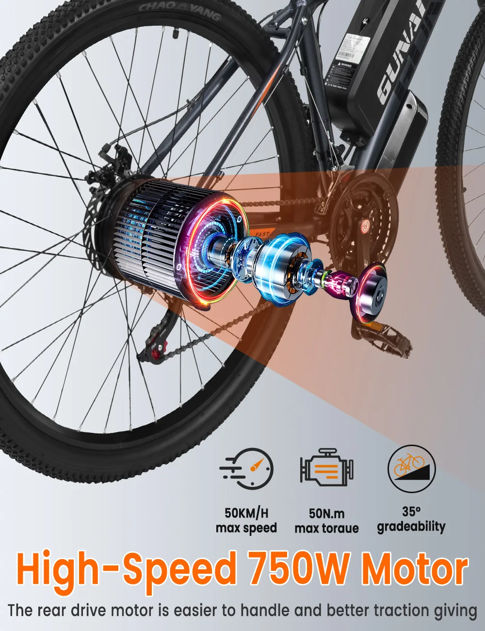 Vélo Électrique GUNAI GN29 pour Adultes, avec Moteur Puissant de 750W, Vélo de Montagne 29 Pouces, Idéal pour la Banlieue, Equipé d’une Batterie 48V 15Ah pour des Longues Distances